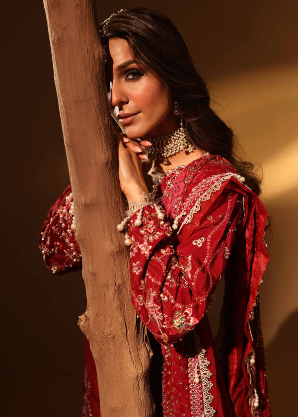 The embroidered chiffon dupatta introduces softness and fluidity, allowing the structured silk base to shine while adding graceful movement. Finished with a sleek dyed raw silk trouser, Velvory is an embodiment of contemporary royalty, powerful, polished, and timeless.
